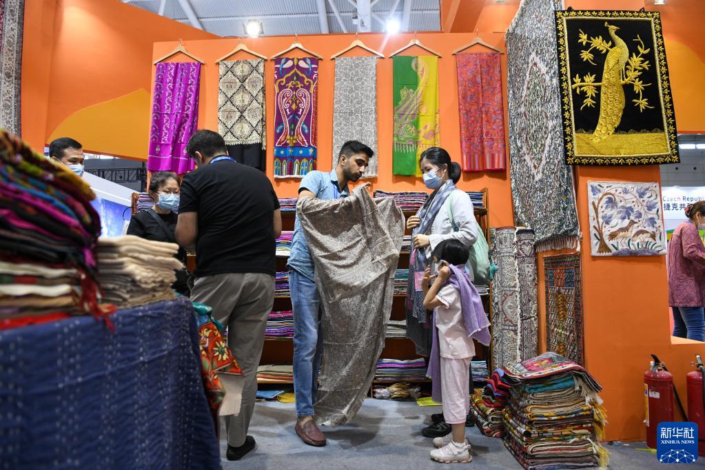 6月9日,在文博会“文旅消费馆·一带一路国际馆”印度展台,观众在选购特色商品。
