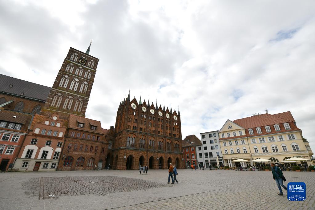 这是6月1日拍摄的德国施特拉尔松德城中心景色。