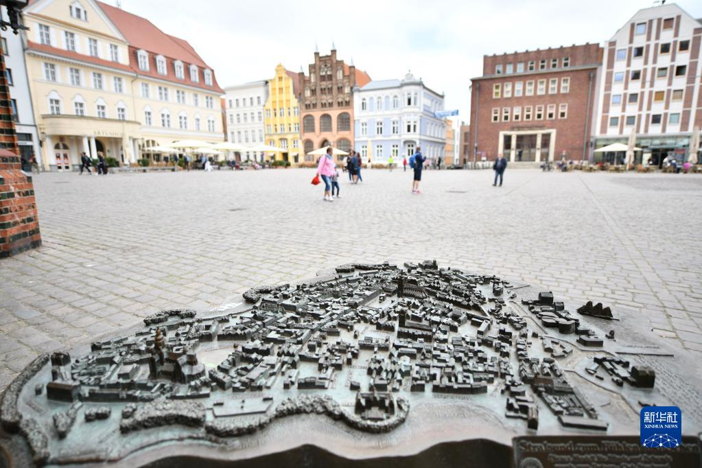 这是6月1日在德国施特拉尔松德拍摄的城市模型。