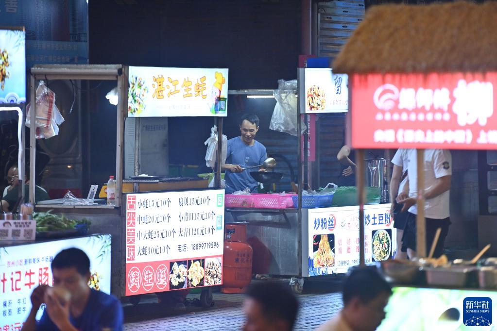 夏夜里,广西柳州市柳北区新开的广雅民生夜市烟火气升腾,炒田螺、螺蛳粉、烤肉串等特色美食吸引众多市民。