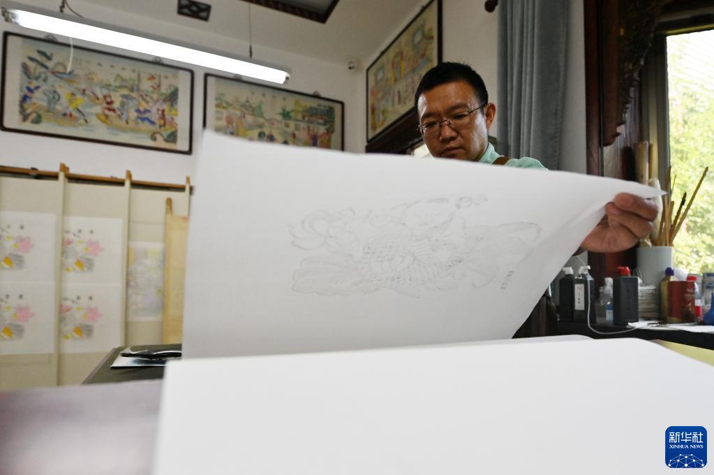 多年来,为了更好地保护传承杨柳青木版年画,霍树林和父亲将散落在各地的古版、画稿搜集起来,筹建起一座年画博物馆,不同时期、风格各异的年画古版有上百块。霍树林说:“得让年画从墙上‘走下来’,吸引更多年轻人的目光。”如今,他和同为传承人的妻子王丹一起将年画元素与现代文创相结合,设计出的团扇、宫灯、扑克等产品,深受年轻消费者喜爱。