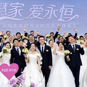 当日,“智慧家 爱永恒”——2023年青岛市新时代文明实践集体婚礼举行,38对新人共同许下“恩爱永远 相伴一生”爱的承诺。近年来,青岛市将节俭家风与文明习俗相结合,大力提倡“喜事新办、新事简办”,引导人们积极践行时代新风。