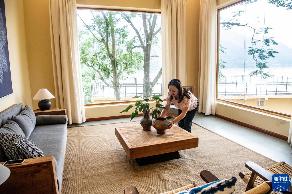6月7日,在位于重庆市云阳县云阳镇蔬菜村的农文旅融合项目改造现场,工作人员在布置民宿房间内饰。该项目由村集体与企业合作经营,将当地闲置农房改造成环境优美、各具特色的精品民宿,既满足了人们亲近乡土自然的旅游消费需求,又持续带动当地村民增收就业。