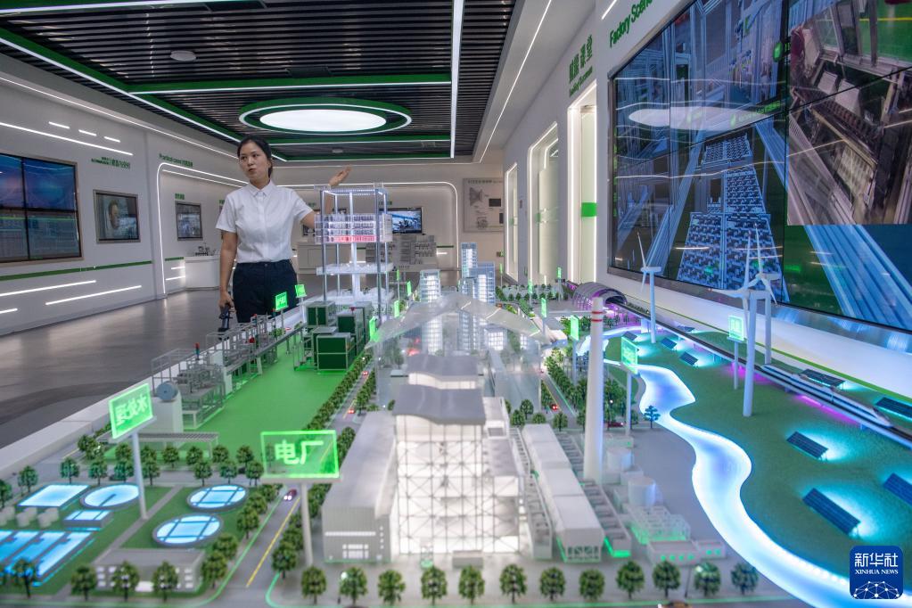 6月6日,在位于重庆市万州区的万州绿色智造赋能中心,工作人员在介绍为企业定制的绿色节能方案。该中心是重庆市第一个专注绿色赋能的平台,着力为工业企业提供创建零碳工厂、零碳供应链、数字化工厂和智能化工厂的整体解决方案,助力制造业高端化、智能化、绿色化发展。