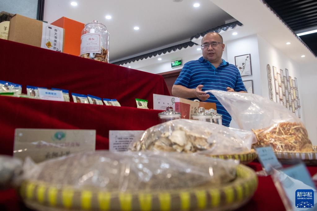 6月7日,在位于重庆市云阳县的重庆三峡云海药业股份有限公司,工作人员在介绍各类产品。该企业通过中药材资源建设,带动库区发展中药材种植面积10余万亩。