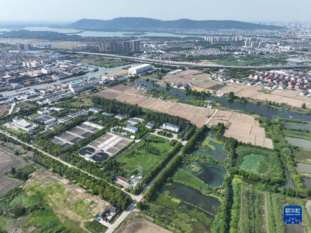 6月9日拍摄的常熟市城西污水处理厂和多水塘活水链湿地以及周边景色(无人机照片)。