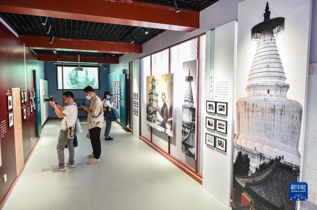 6月10日,2023“文化和自然遗产日”北京市主场活动暨北京白塔文化周开幕。观众在参观“映像白塔——历史镜头中的妙应寺”展览。