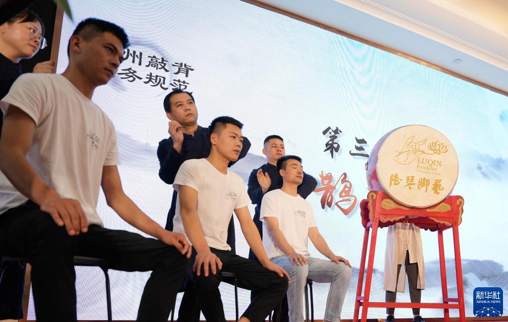 6月10日,在扬州举行的首届全国传统修脚术非遗传承人峰会上,学员展示敲背技艺。