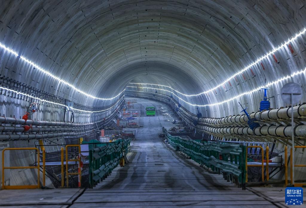 6月8日拍摄的深圳妈湾跨海通道已完成管片拼装的隧道。