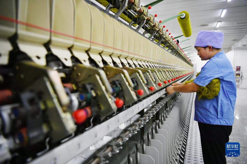 6月10日,工作人员在宁夏灵武羊绒产业园区一家羊绒加工企业调整设备。
