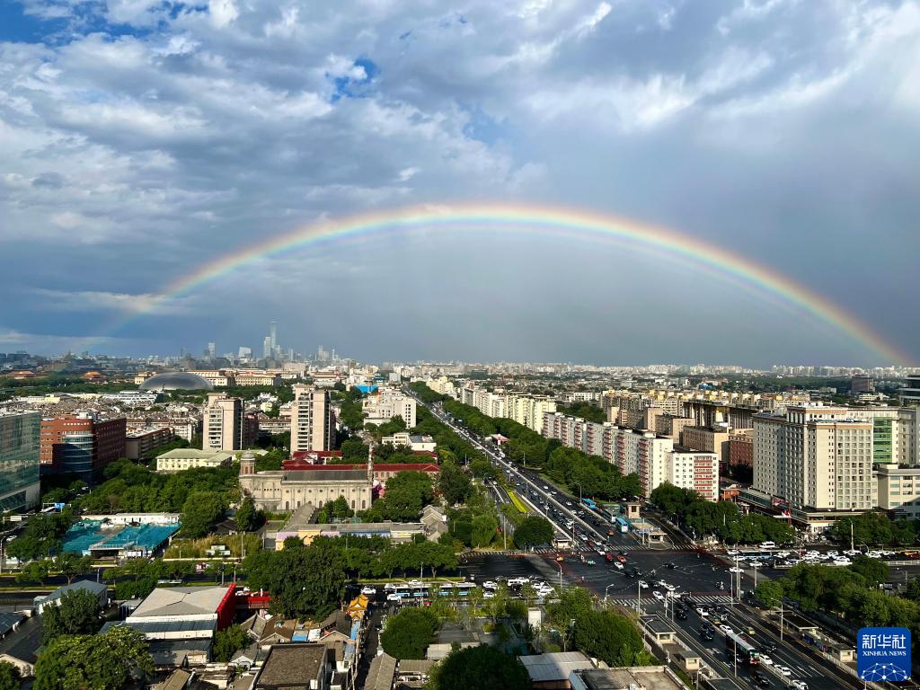 6月11日在北京宣武门附近拍摄的彩虹(手机照片)。