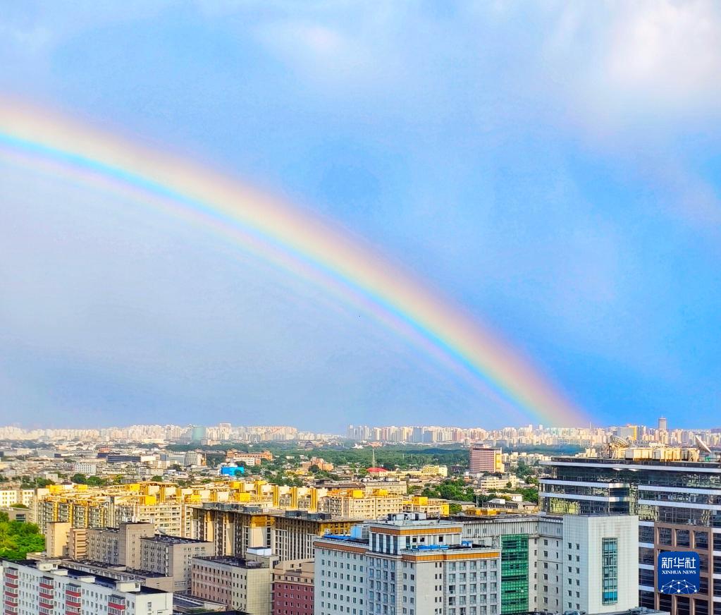 这是6月11日在北京宣武门附近拍摄的彩虹(手机照片)。