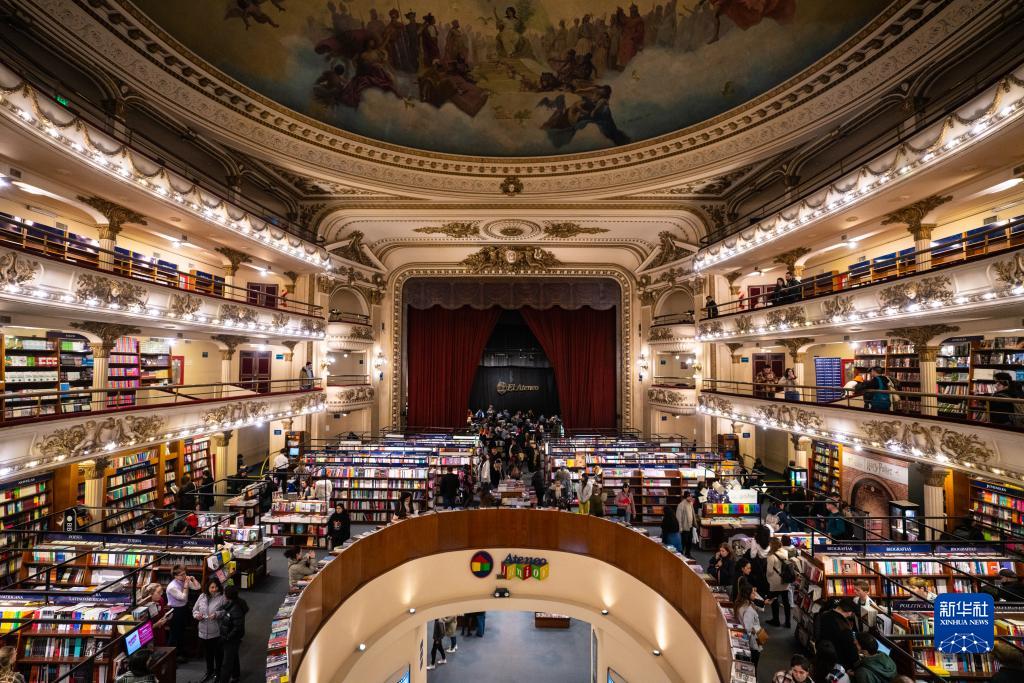 这是6月10日在阿根廷首都布宜诺斯艾利斯拍摄的雅典人书店。