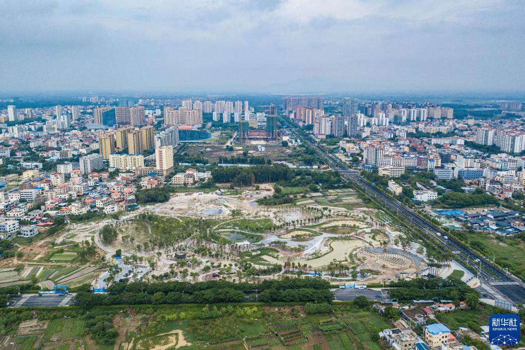 6月10日在海南省东方市拍摄的建设中的福民湖(福民公园)(无人机照片)。