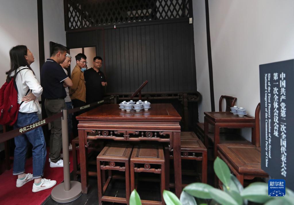6月7日,人们在中共二大会址纪念馆内参观。