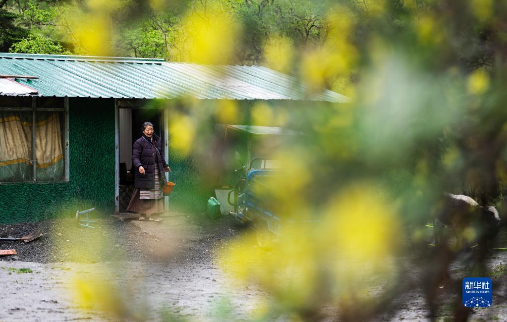 6月10日,央宗从牧场小屋里走出,准备去挤奶。