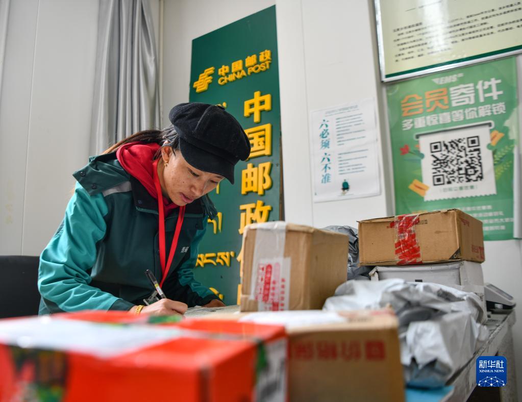 玉麦乡邮政营业员索朗卓嘎在登记快递邮件(6月10日摄)。