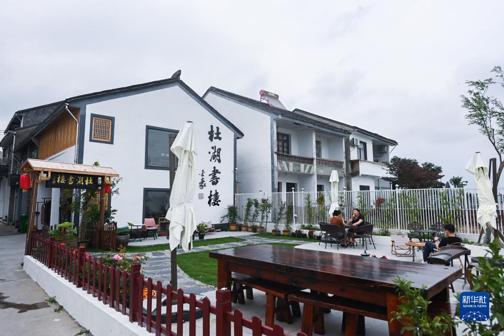 6月12日,游客在慈溪市观海卫镇双湖村的一家茶室喝茶聊天,双湖村是一个坐拥三山两湖的江南典型村落,东靠杜湖,南邻白洋湖。近年来,双湖村努力打造成为独具农文融合的古村旅游目的地。该村获得第七批中国历史文化名镇古村、浙江省美丽宜居村、浙江省美丽乡村特色精品村等荣誉。