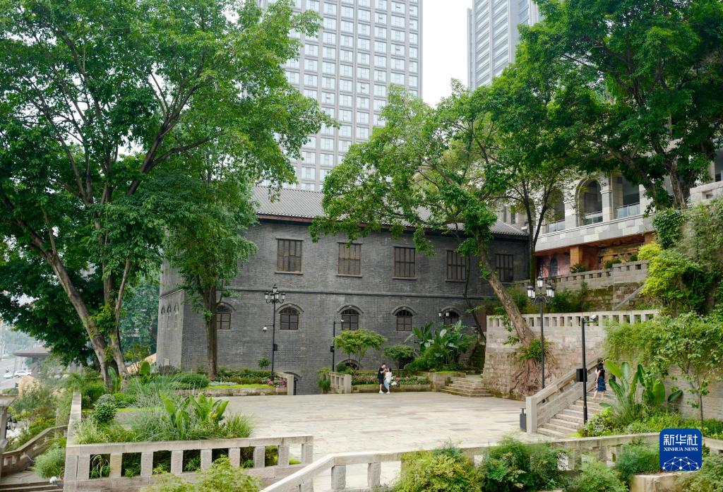 6月9日,重庆开埠遗址公园内,游客在参观游览。