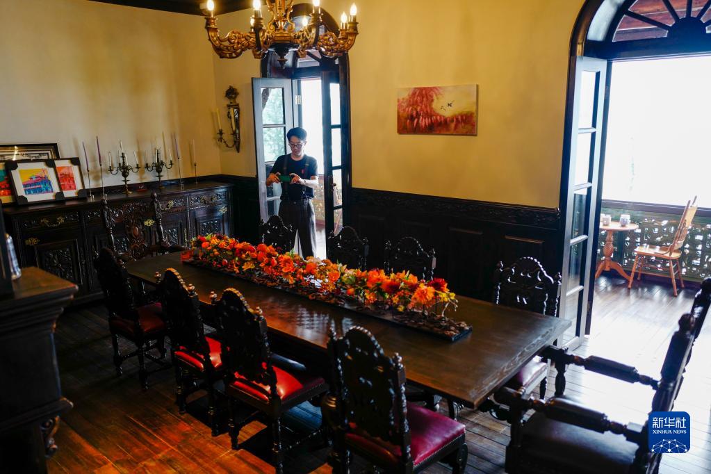 6月9日,重庆开埠遗址公园的立德乐洋行旧址主楼内,游客在打卡拍照。