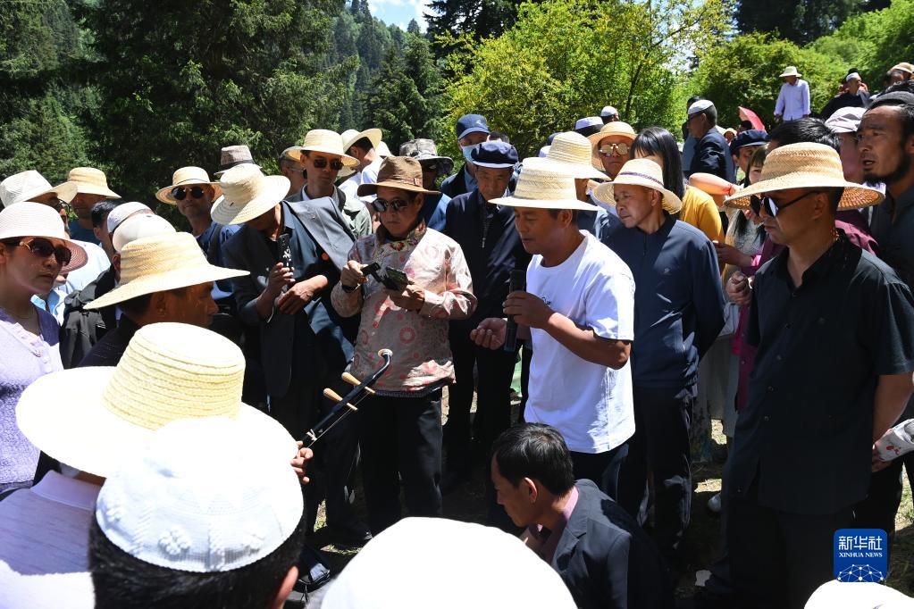 6月13日,在和政县松鸣岩景区,人们观看花儿表演。