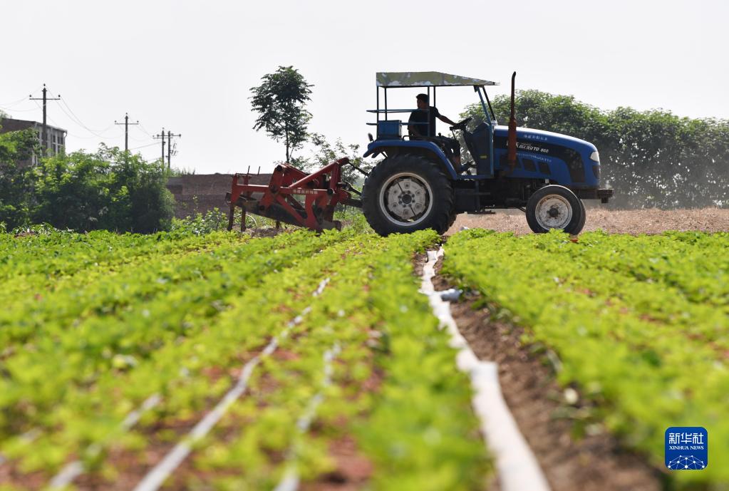 近日,在位于关中平原的陕西省西安市鄠邑区,农户在麦收后抢抓农时开展夏种夏管,田间地头一派忙碌景象。