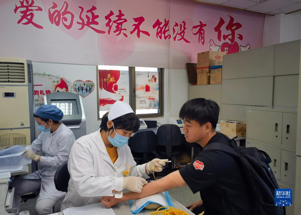 6月13日,中建三局北京公司旧宫安置房项目的青年员工在北京市红十字血液中心献血。