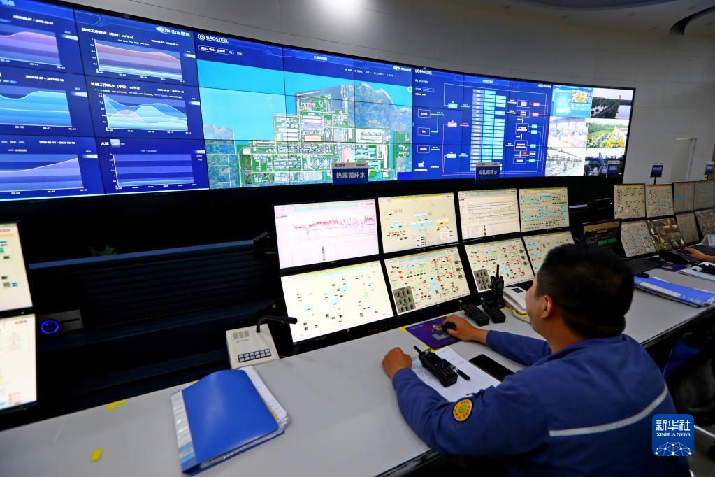 6月13日,一名工作人员在广东省湛江市东海岛的宝钢湛江钢铁有限公司内工作。