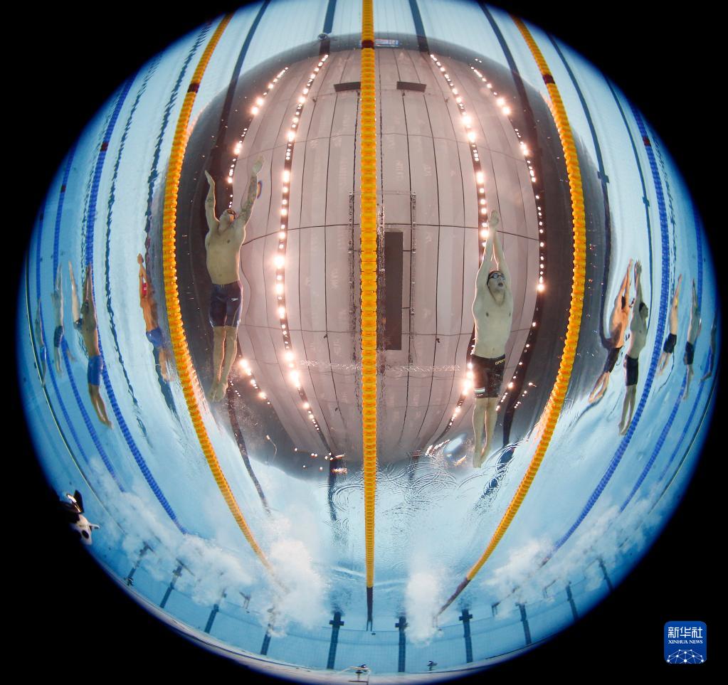 图为美国游泳运动员德雷塞尔(左)在东京奥运会男子100米蝶泳决赛中(2021年7月31日摄)。