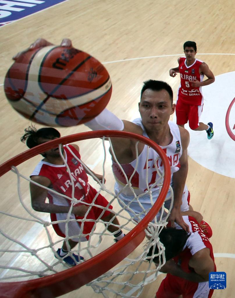图为中国队球员易建联(上)在2015亚洲男篮锦标赛半决赛中扣篮(2015年10月2日摄)。