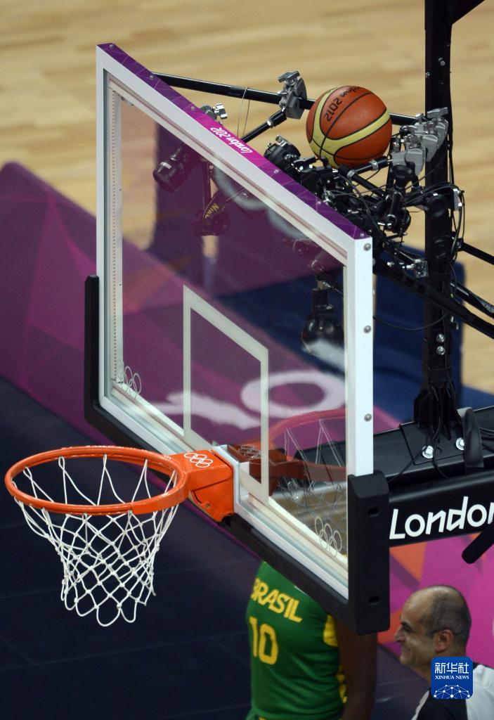 图为伦敦奥运会女篮赛场篮板后侧安装的遥控相机(2012年8月1日摄)