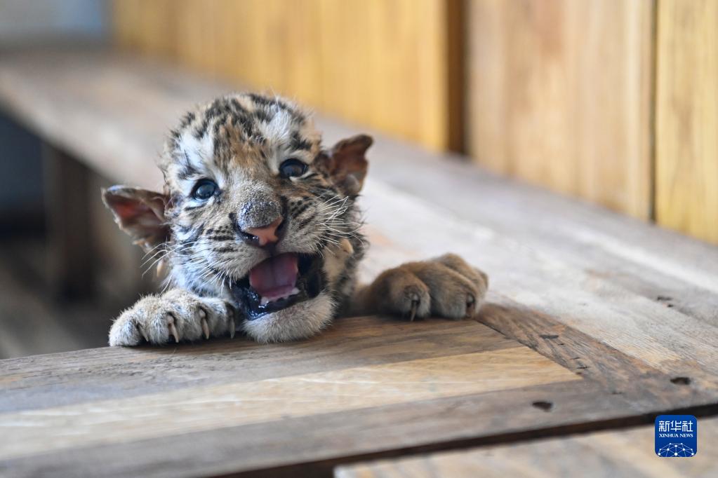 目前,黑龙江东北虎林园今年新出生的东北虎幼崽大部分已满月。这些活泼好动的小东北虎天气好时就会被送到室外活动,在饲养员的悉心照料下茁壮成长。