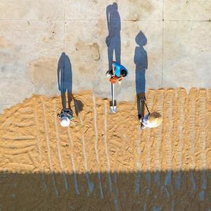 6月13日,在河南省安阳市汤阴县古贤镇支村党群服务中心临时晾晒点,村民在翻晒麦子。