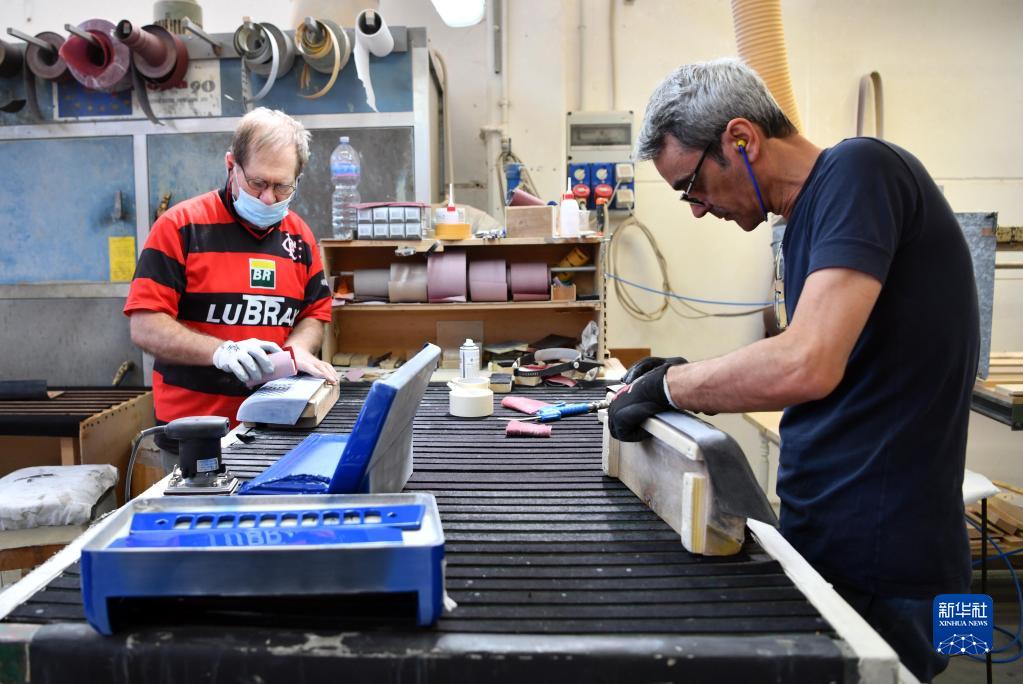 5月29日,在意大利卡斯特尔菲达多,贝尔杜纳品牌手风琴工匠打磨手风琴部件。