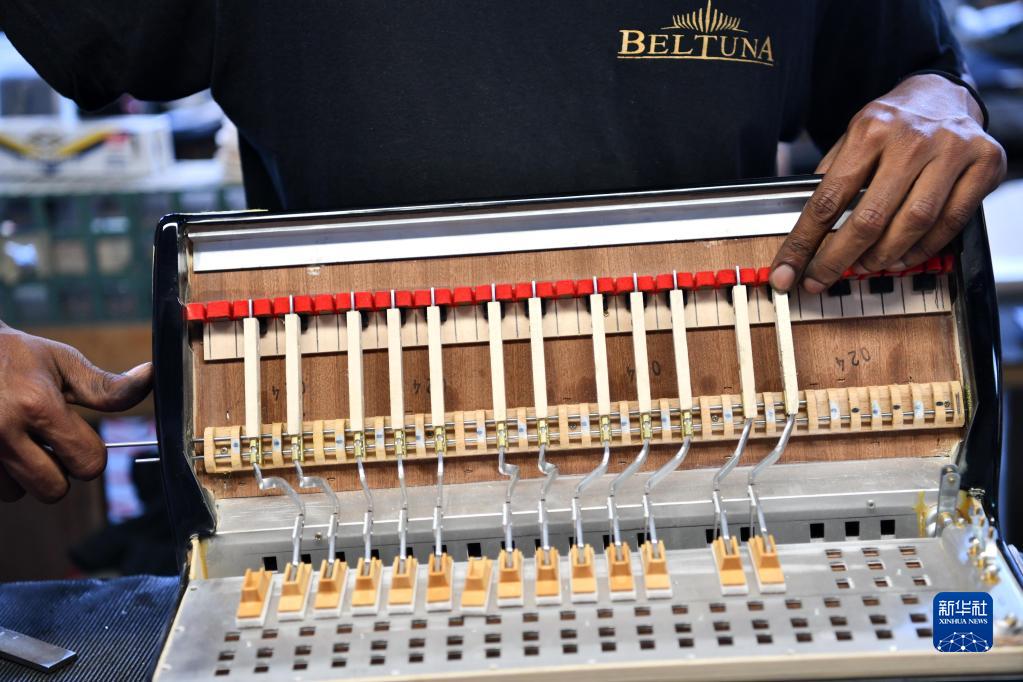 5月29日,在意大利卡斯特尔菲达多,贝尔杜纳品牌手风琴工匠组装手风琴。