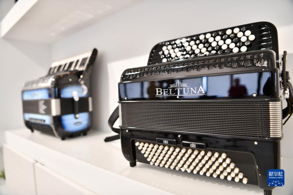 这是5月29日在意大利卡斯特尔菲达多拍摄的贝尔杜纳品牌手风琴。