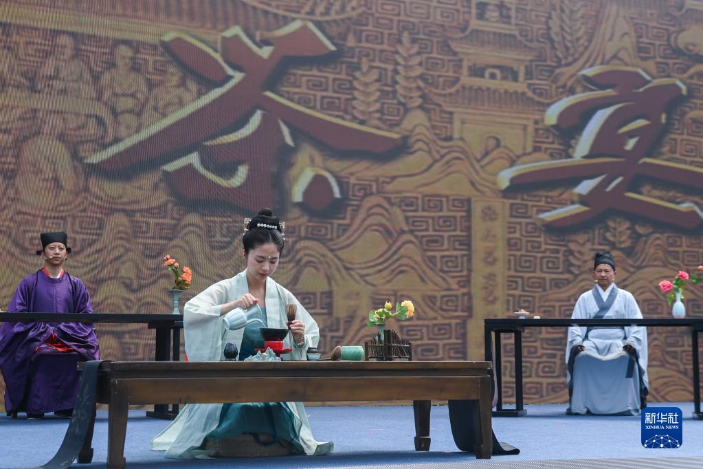 6月9日,2023年“文化和自然遗产日”杭州(拱墅)主场系列活动在杭州运河亚运体育公园开启。这是活动现场举行的入选国家级非物质文化遗产名录的《径山茶宴》展示。
