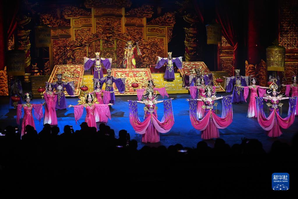 游客在杭州宋城景区观看大型歌舞《宋城千古情》(3月20日摄)。