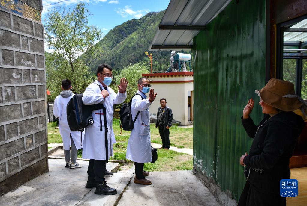 6月12日上午10点,广东珠海市人民医院第七批援藏医疗队队长王振疆、队员陈冰、王彤旭和年轻的当地医生尼玛益西一起带着医疗设备和药品,离开西藏米林市人民医院,驱车前往30多公里外的吞不绒村为患者进行诊疗。