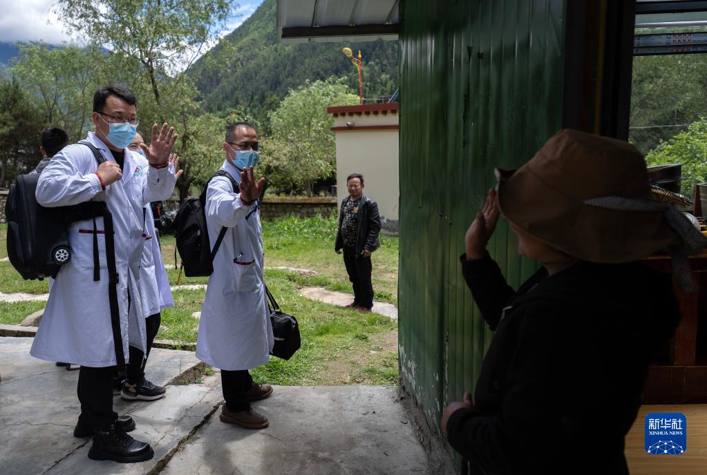 6月12日上午10点,广东珠海市人民医院第七批援藏医疗队队长王振疆、队员陈冰、王彤旭和年轻的当地医生尼玛益西一起带着医疗设备和药品,离开西藏米林市人民医院,驱车前往30多公里外的吞不绒村为患者进行诊疗。
