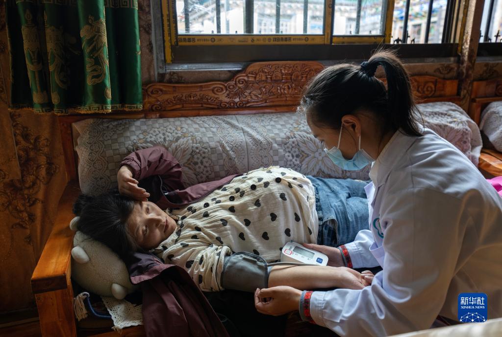 6月12日,陈冰(右)在为扎西央宗进行产检。