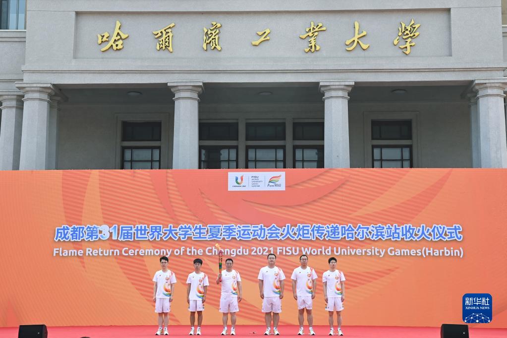 这是6月15日拍摄的成都第31届世界大学生夏季运动会火炬传递哈尔滨站收火仪式现场。