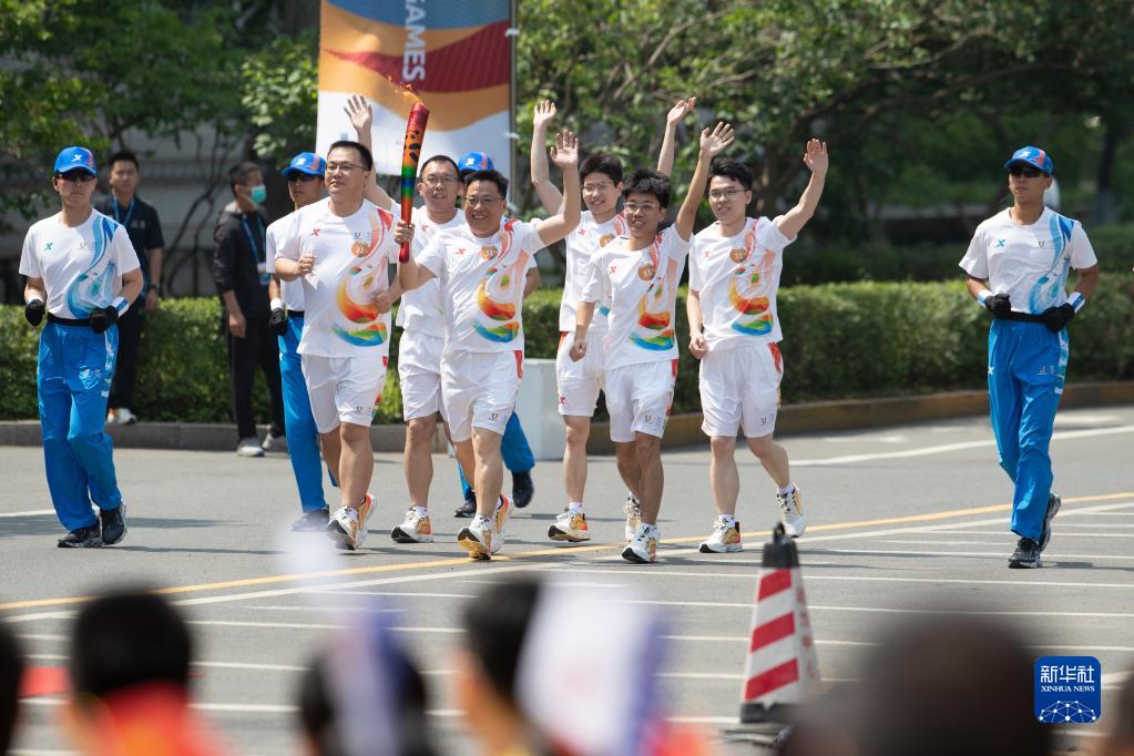 6月15日,最后一棒火炬手、哈工大问天舱机械臂团队成员在火炬传递中。