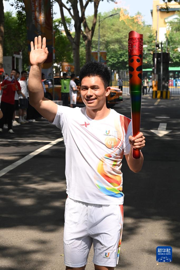 6月15日,火炬手钟齐鑫在火炬传递中。