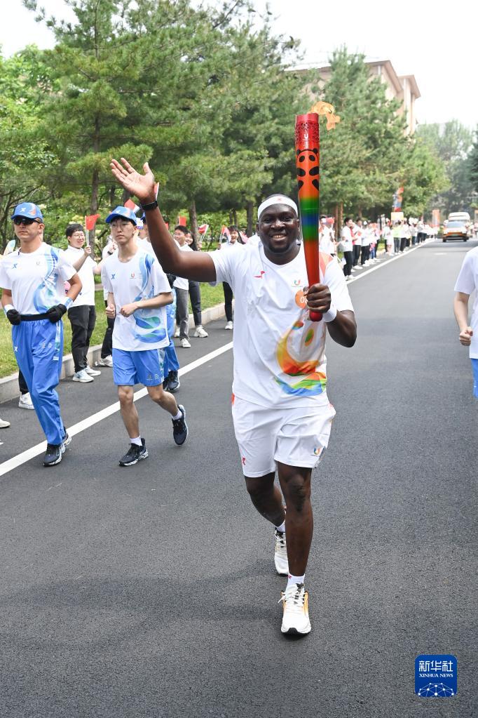 6月15日,火炬手乐古在火炬传递中。