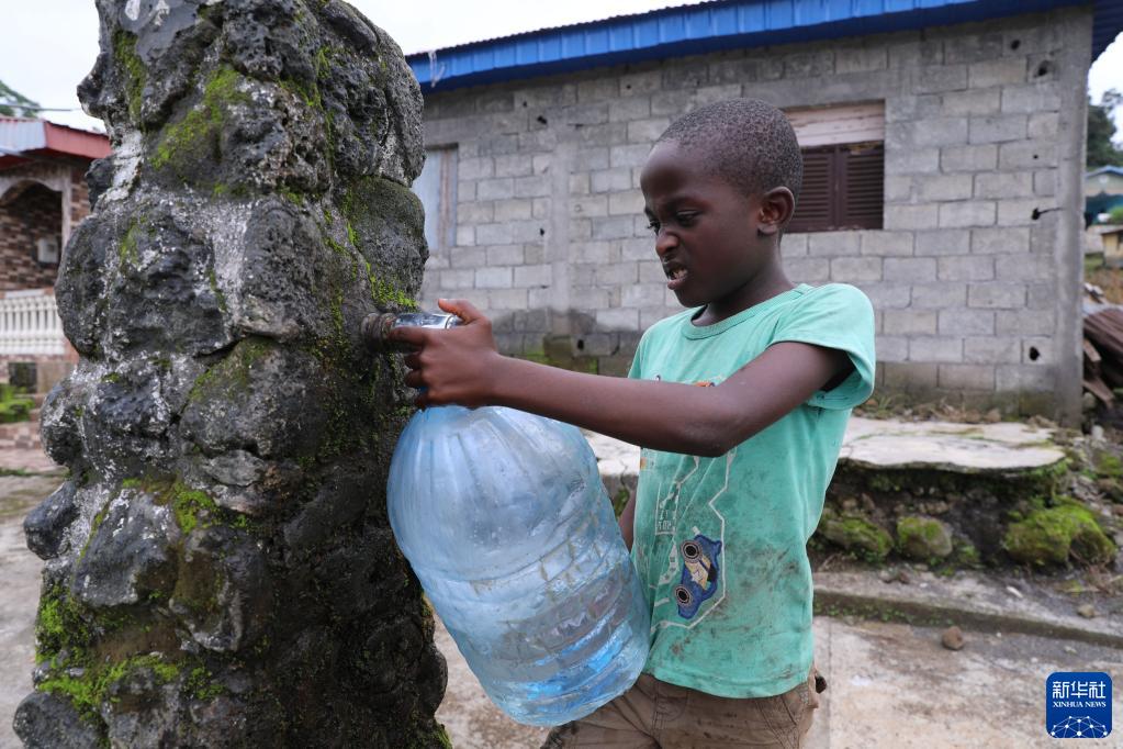 6月13日,在赤道几内亚北比奥科省村镇柏搜搜,一个孩子在公共取水点取水。