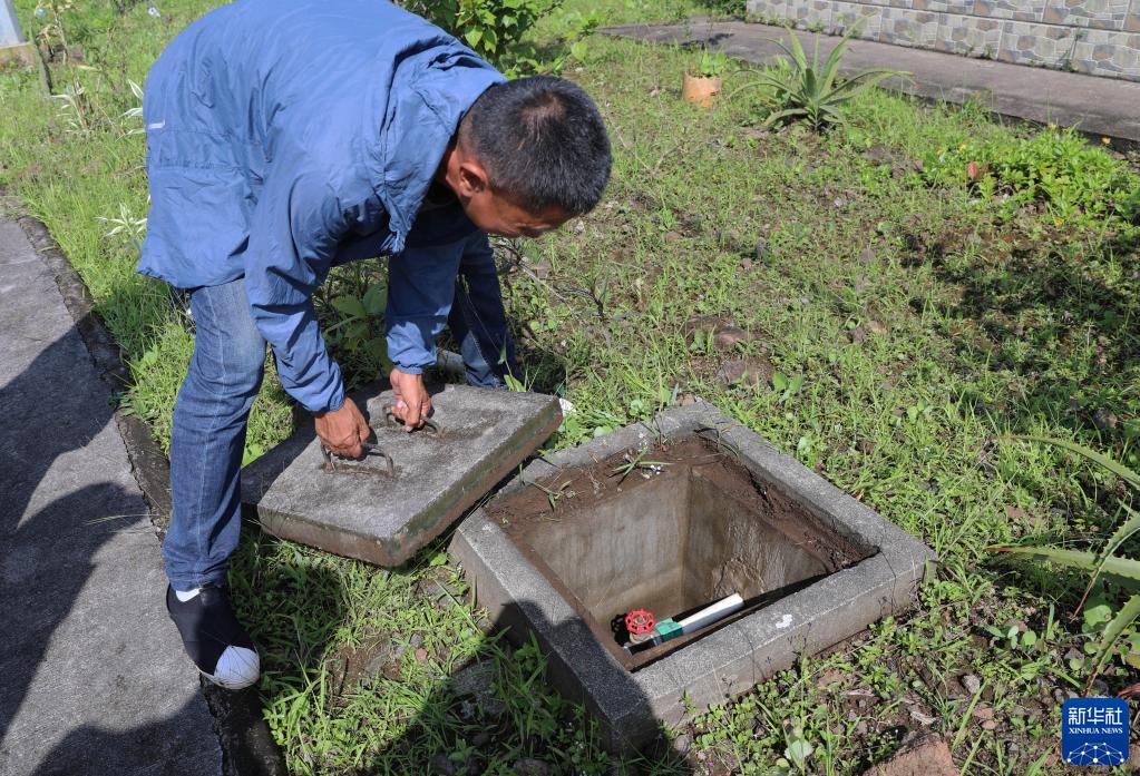 6月13日,在赤道几内亚北比奥科省村镇巴里奥贝,工作人员检查给水管。