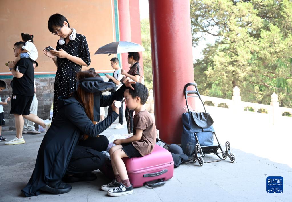 6月14日,一名小朋友在故宫内化妆,准备拍摄写真。