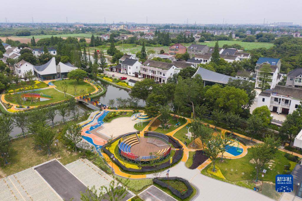 6月15日,空中俯瞰嘉兴市秀洲区新塍镇洛东村(无人机照片)。新塍镇洛东村位于新塍镇的西北部,2022年,洛东村以儿童画为切入点,以“凤凰洲.童画村”为主题开展未来乡村建设,建设布点儿童画馆、童年剧场等,沉浸式体验儿童画艺术的魅力。同时打造“数智+邻里”的智慧、健康的“儿童友好型”未来乡村,被评为2022年度浙江省级未来乡村创建成效优秀村。