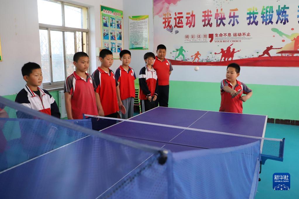 6月15日,在河北省沧州市吴桥县马库吏小学,学生练习乒乓球。